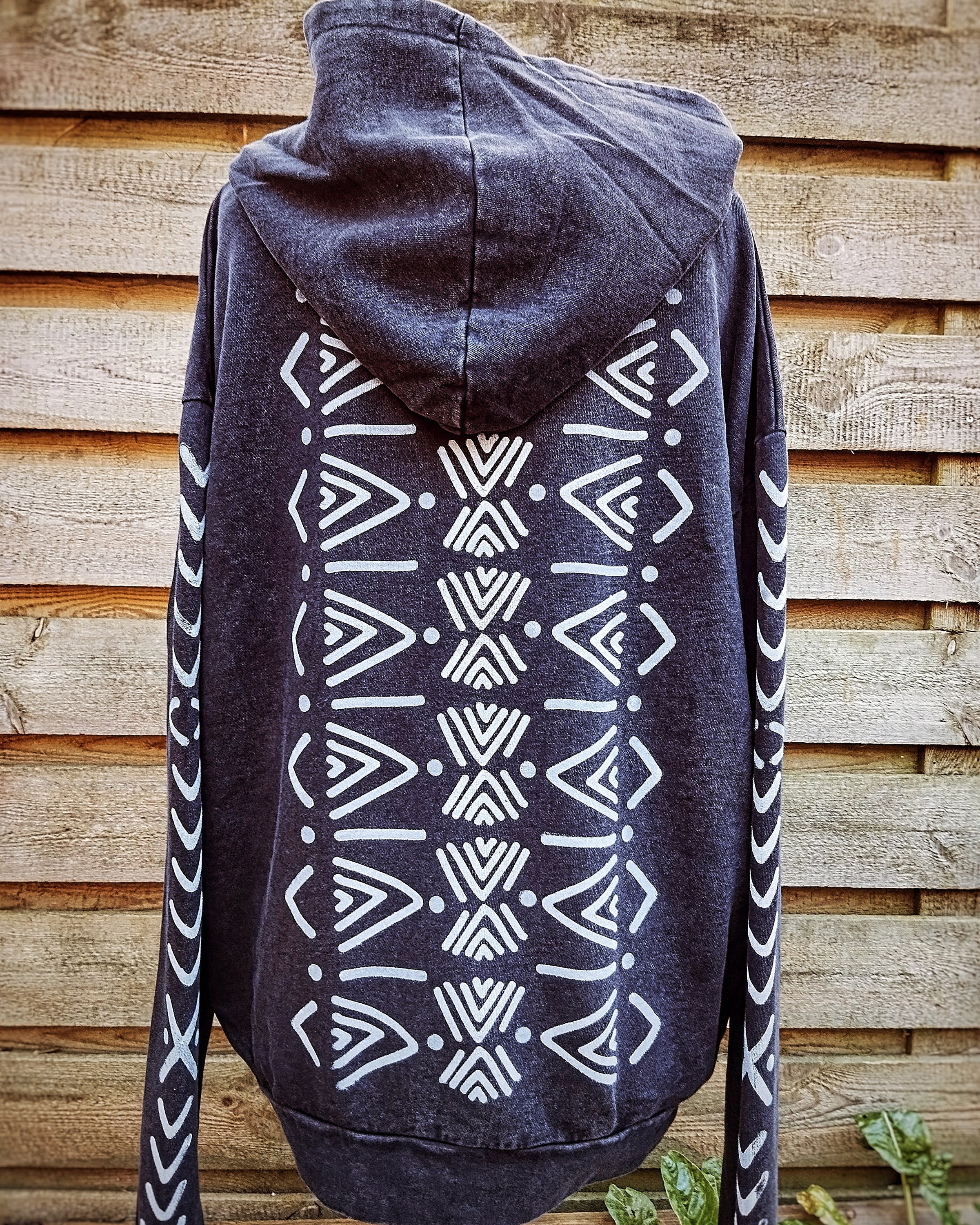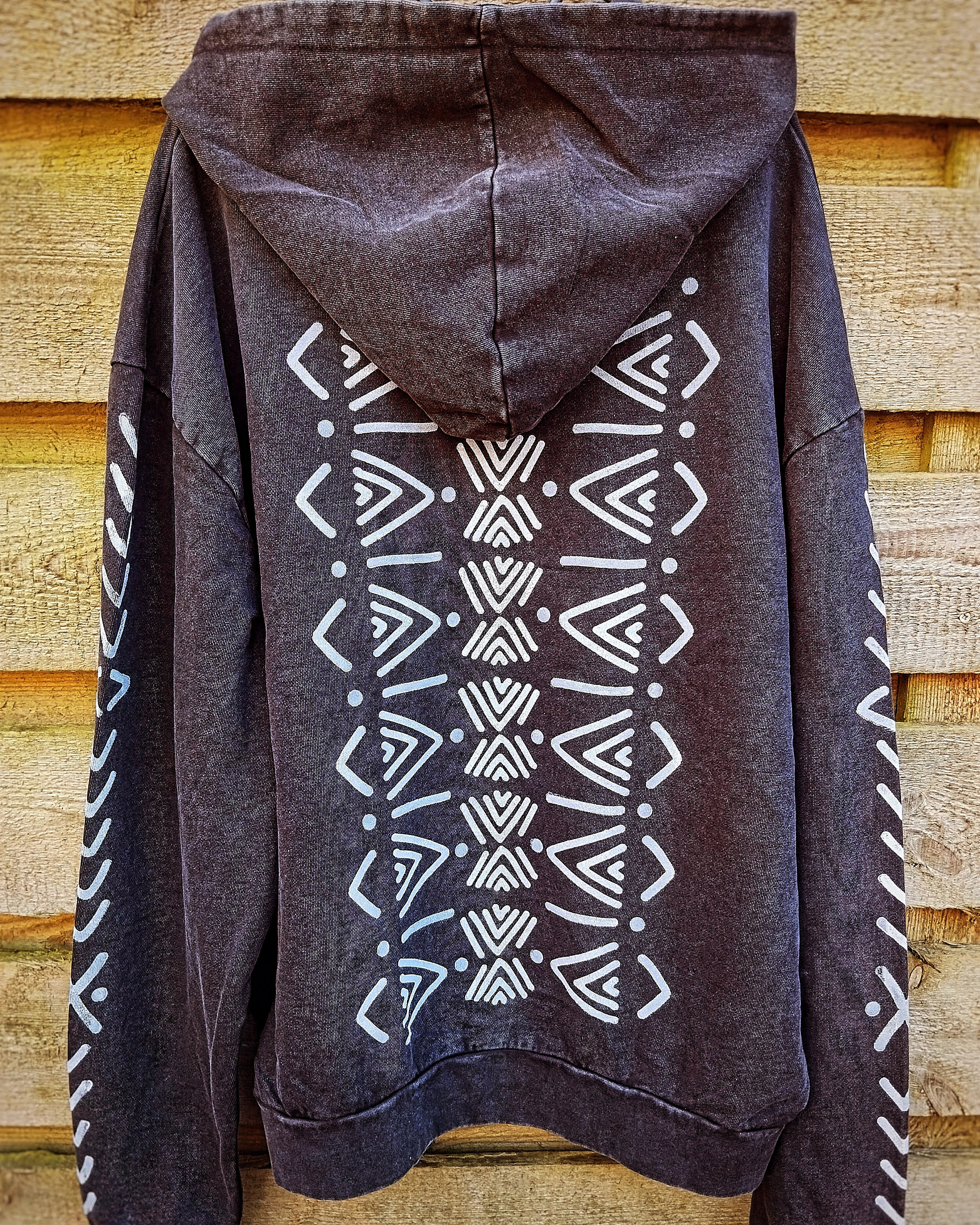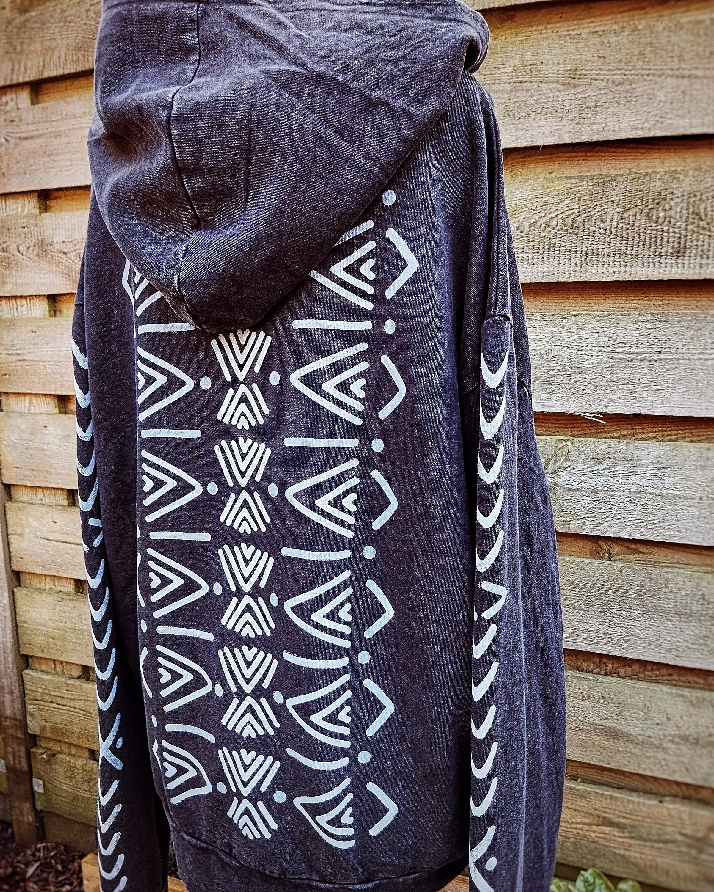 Hand-printed hoodie by using carved wooden blocks.