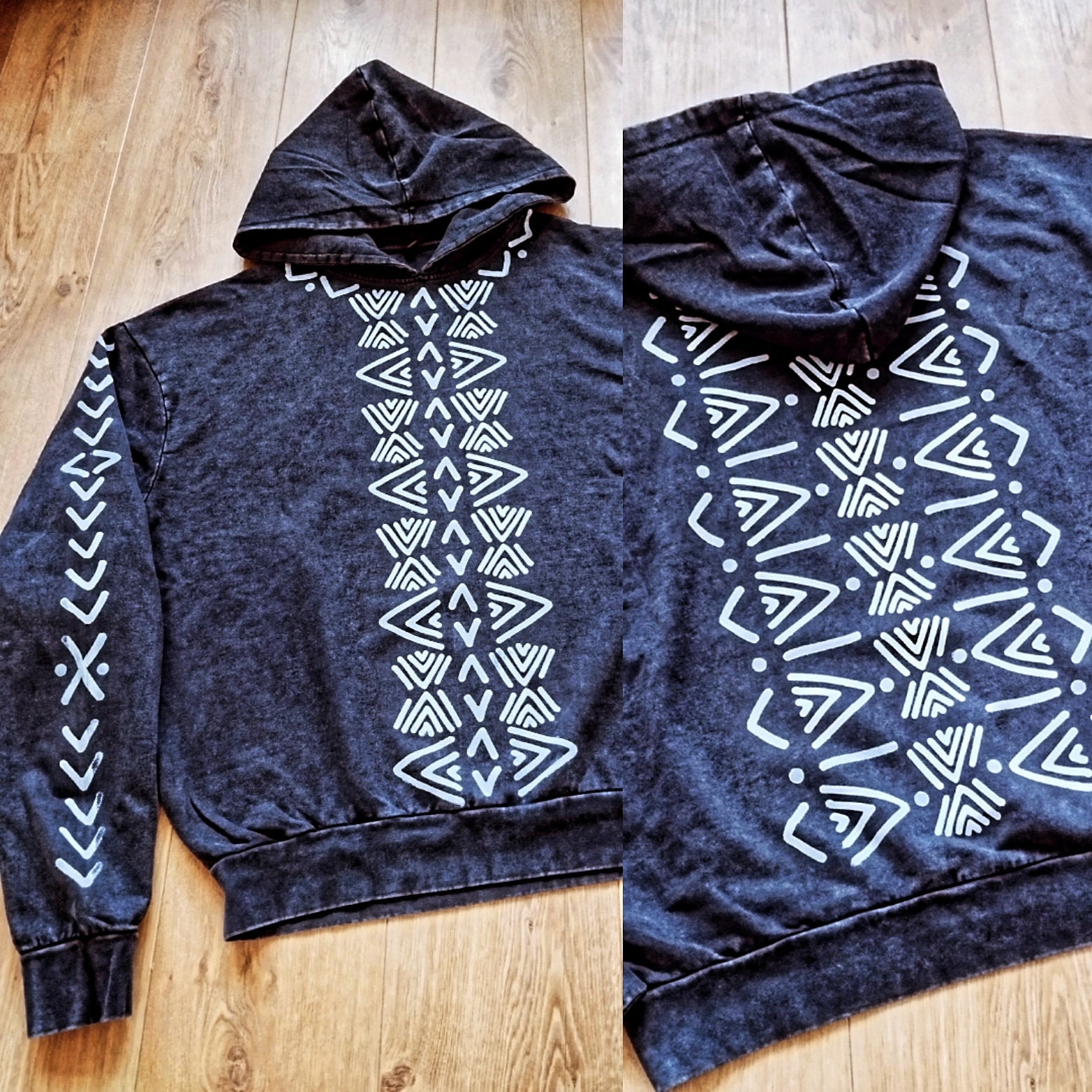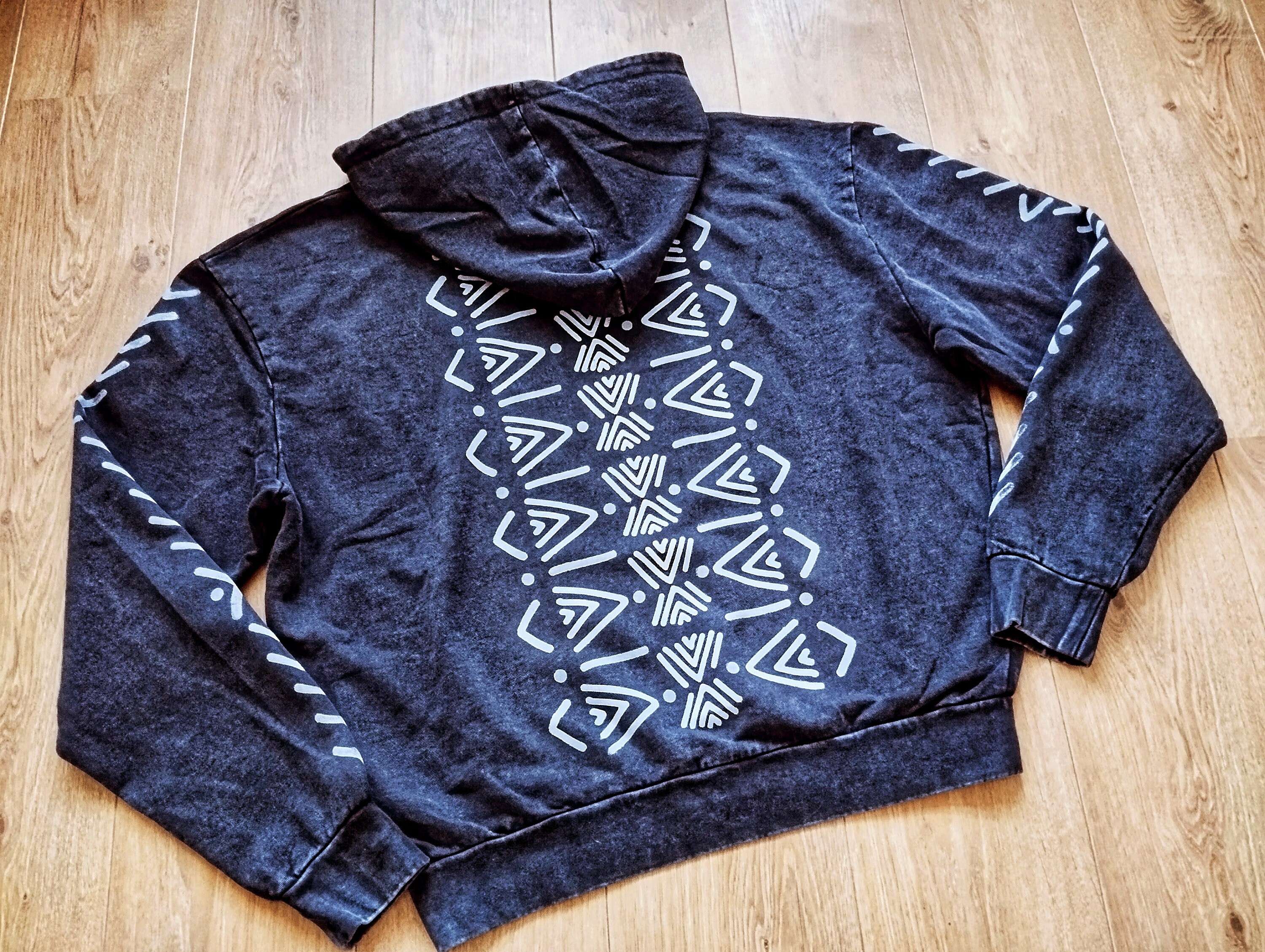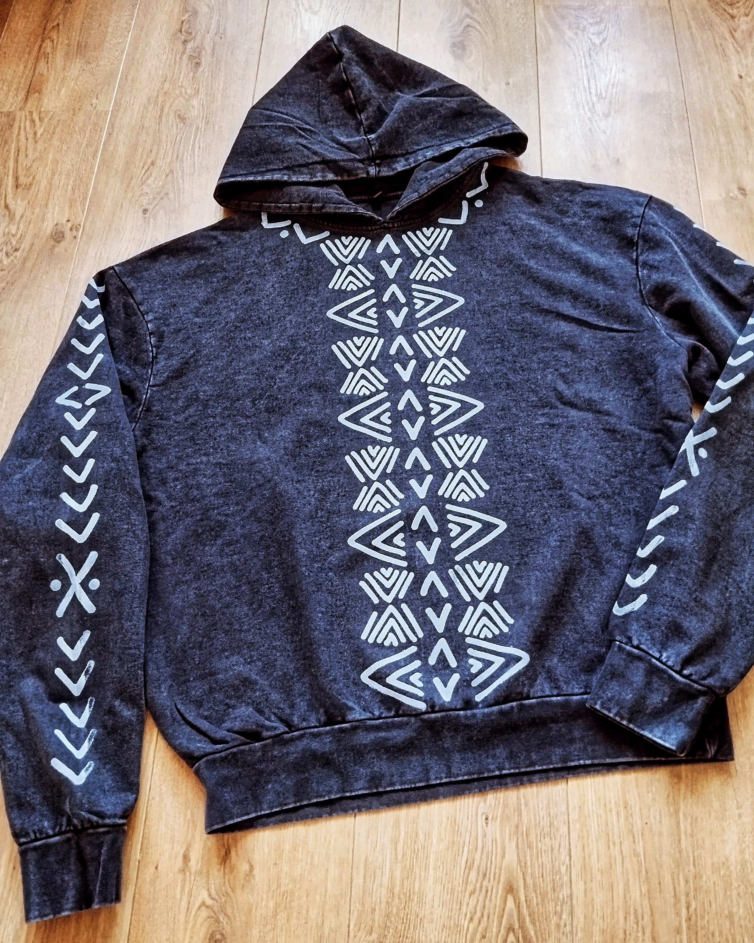 Hand-printed hoodie by using carved wooden blocks.