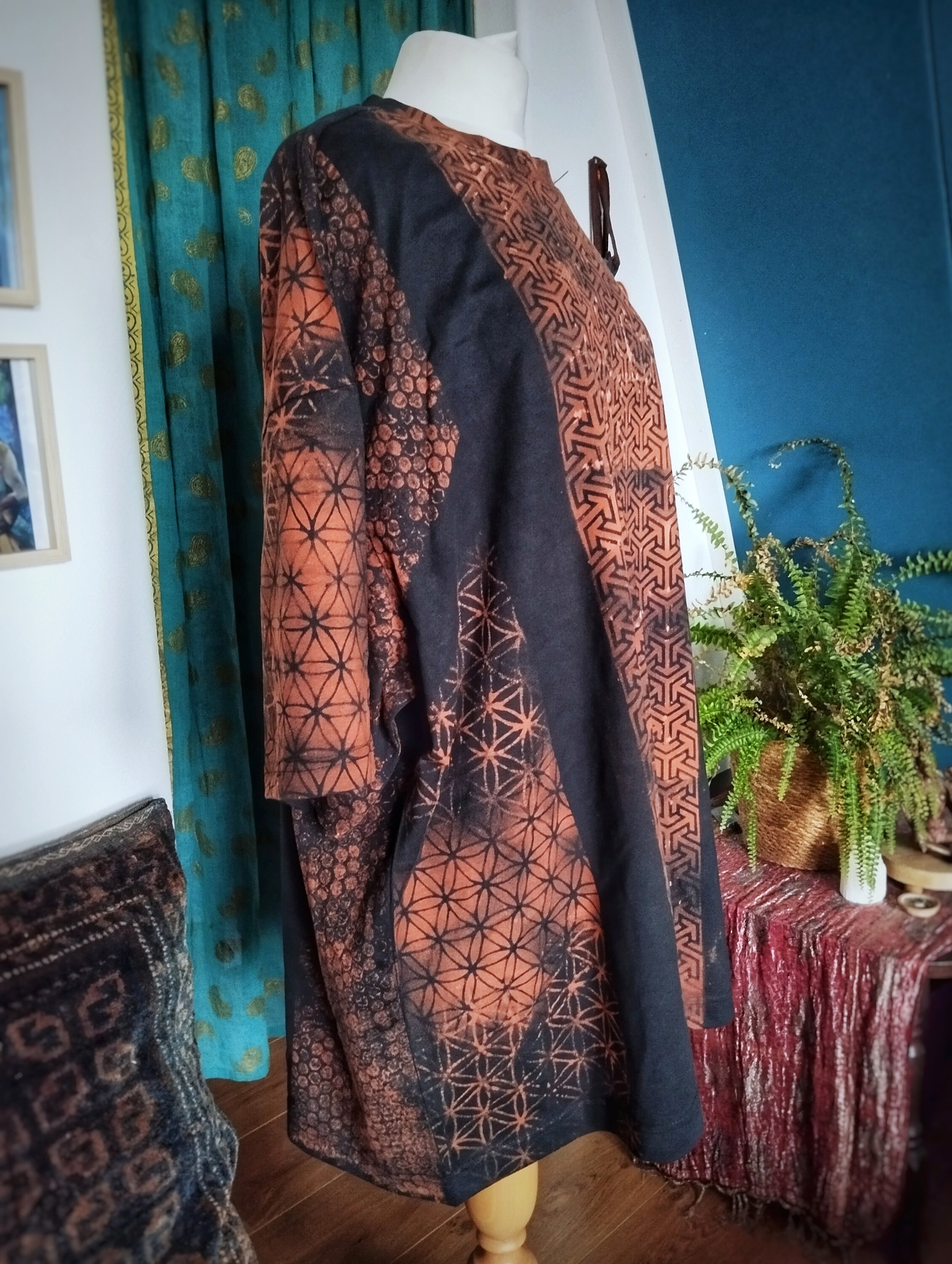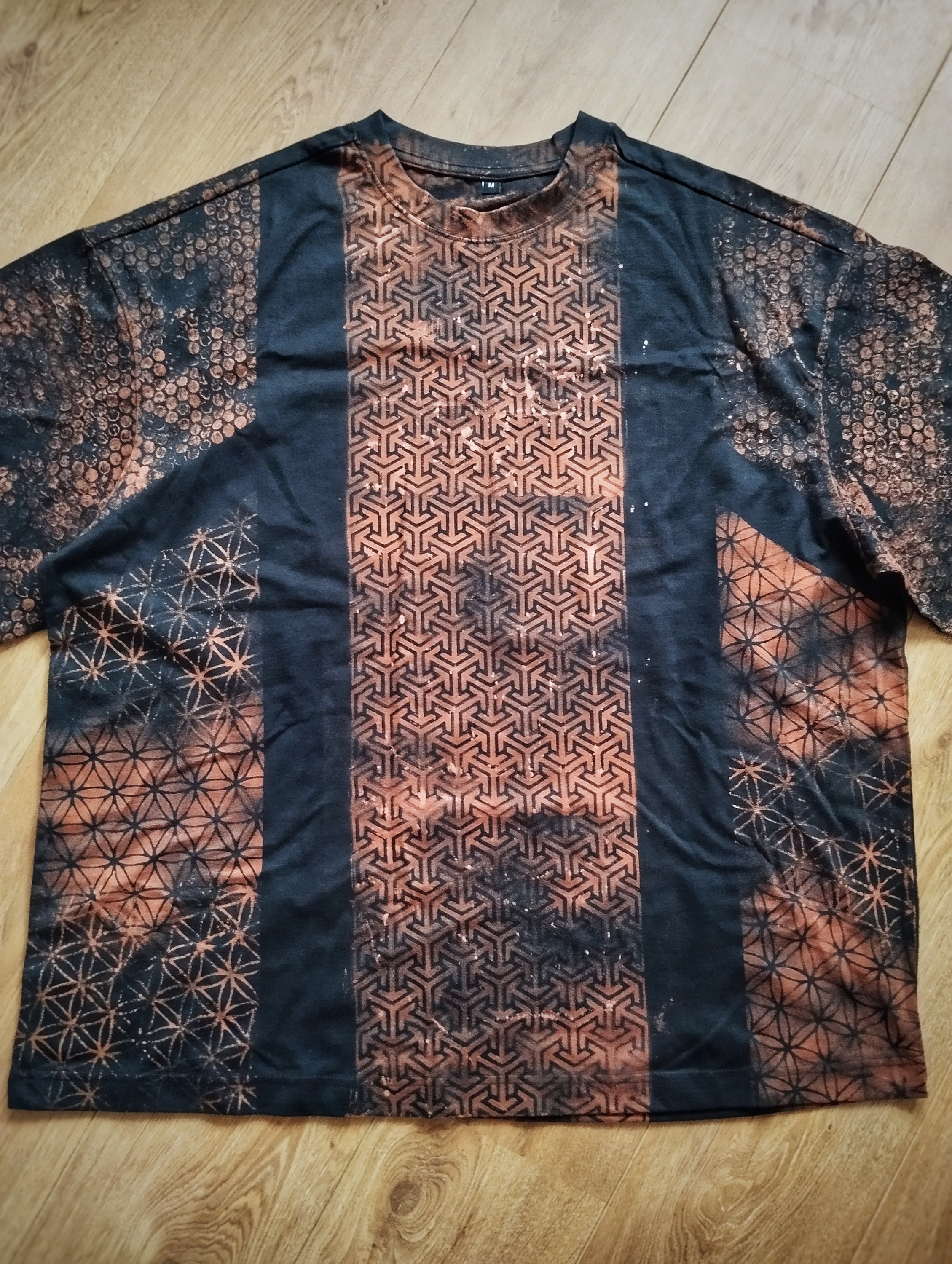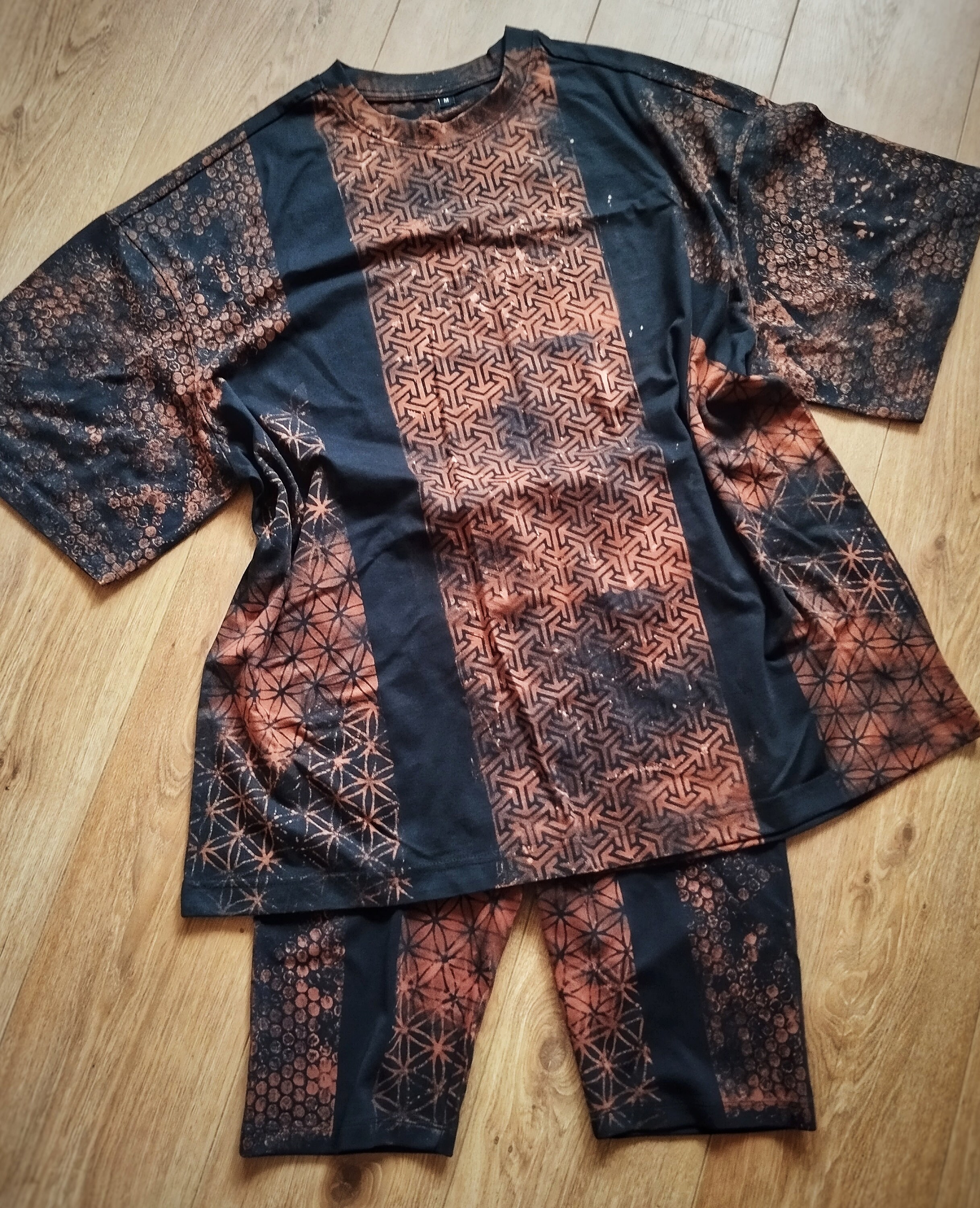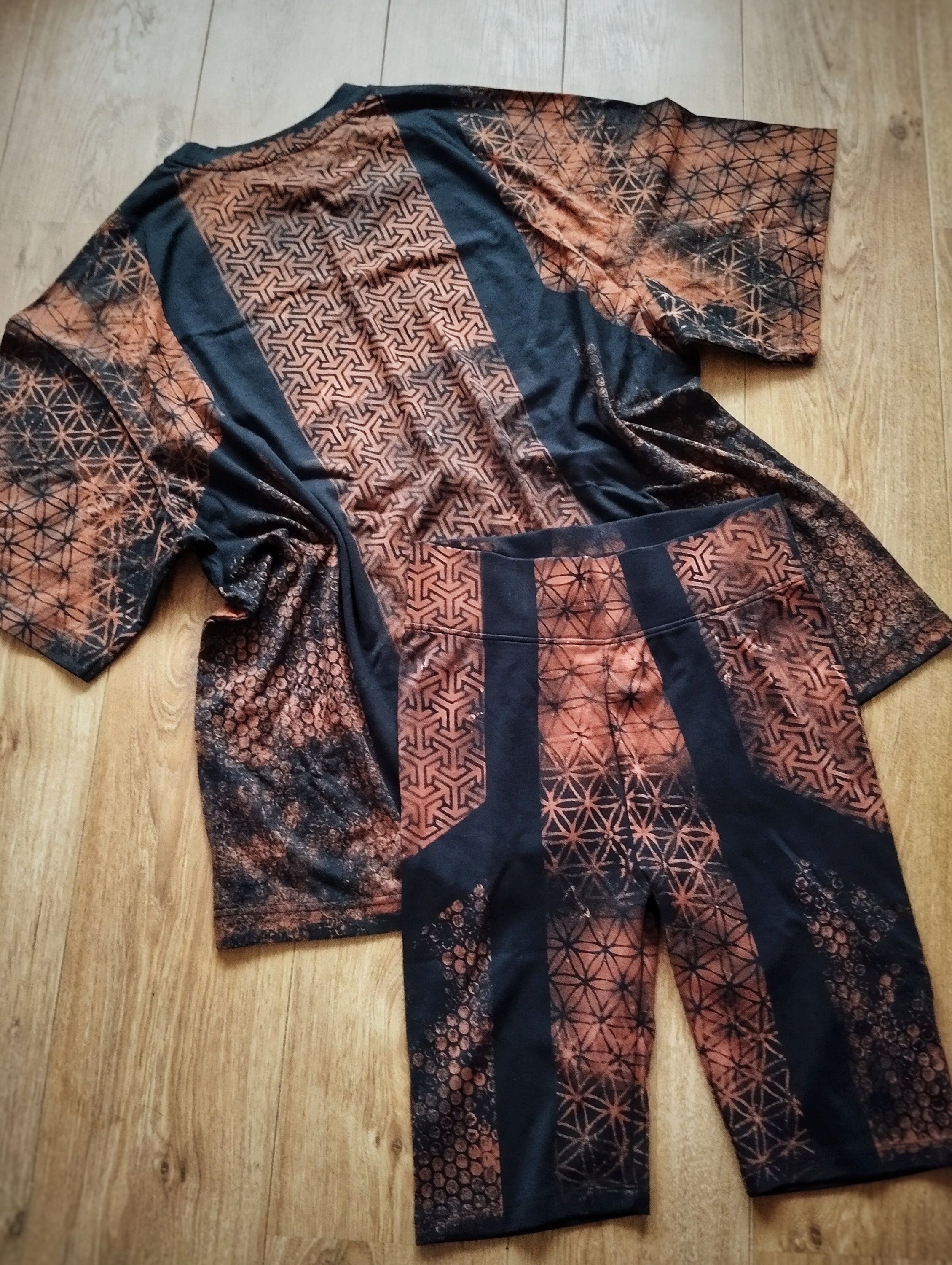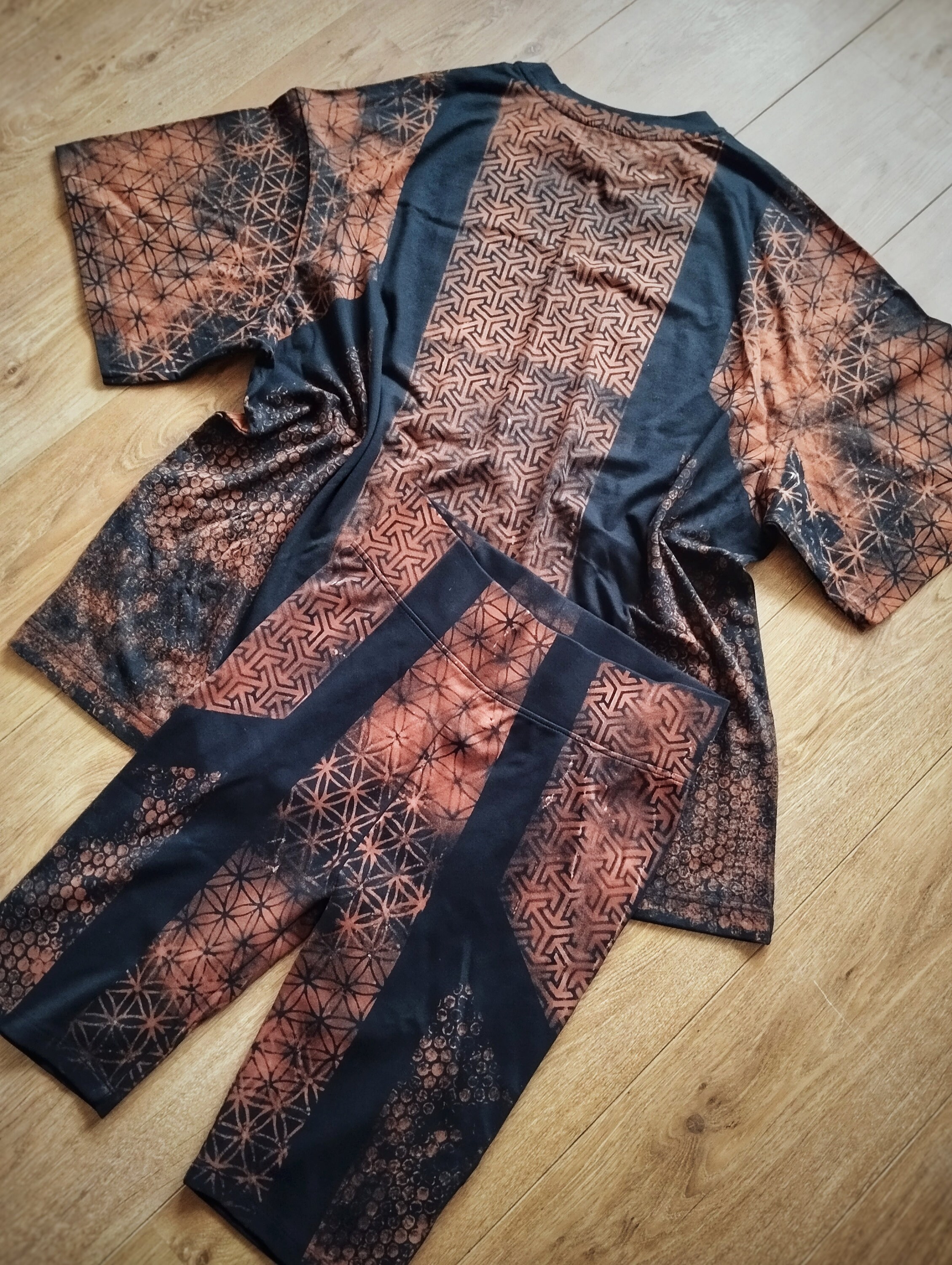 Oversized T-shirt and leggings short set, hand printed by Dusty.