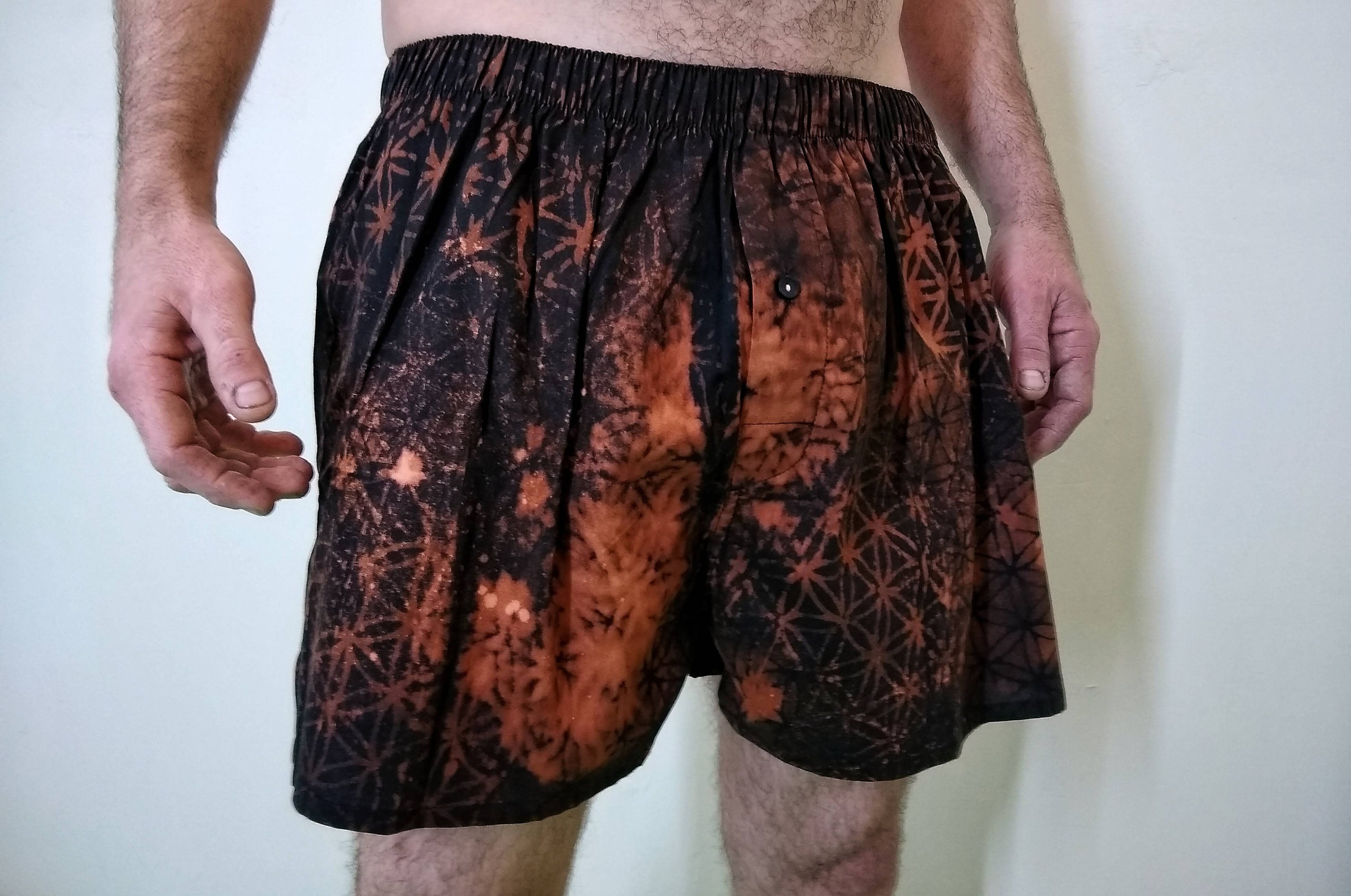 Sacred Geometry boxers are made from 100% organic cotton making them durable and comfortable to wear. They have a loose-fitting style with a false fly, and a self- fabric gathered elastic waistband.