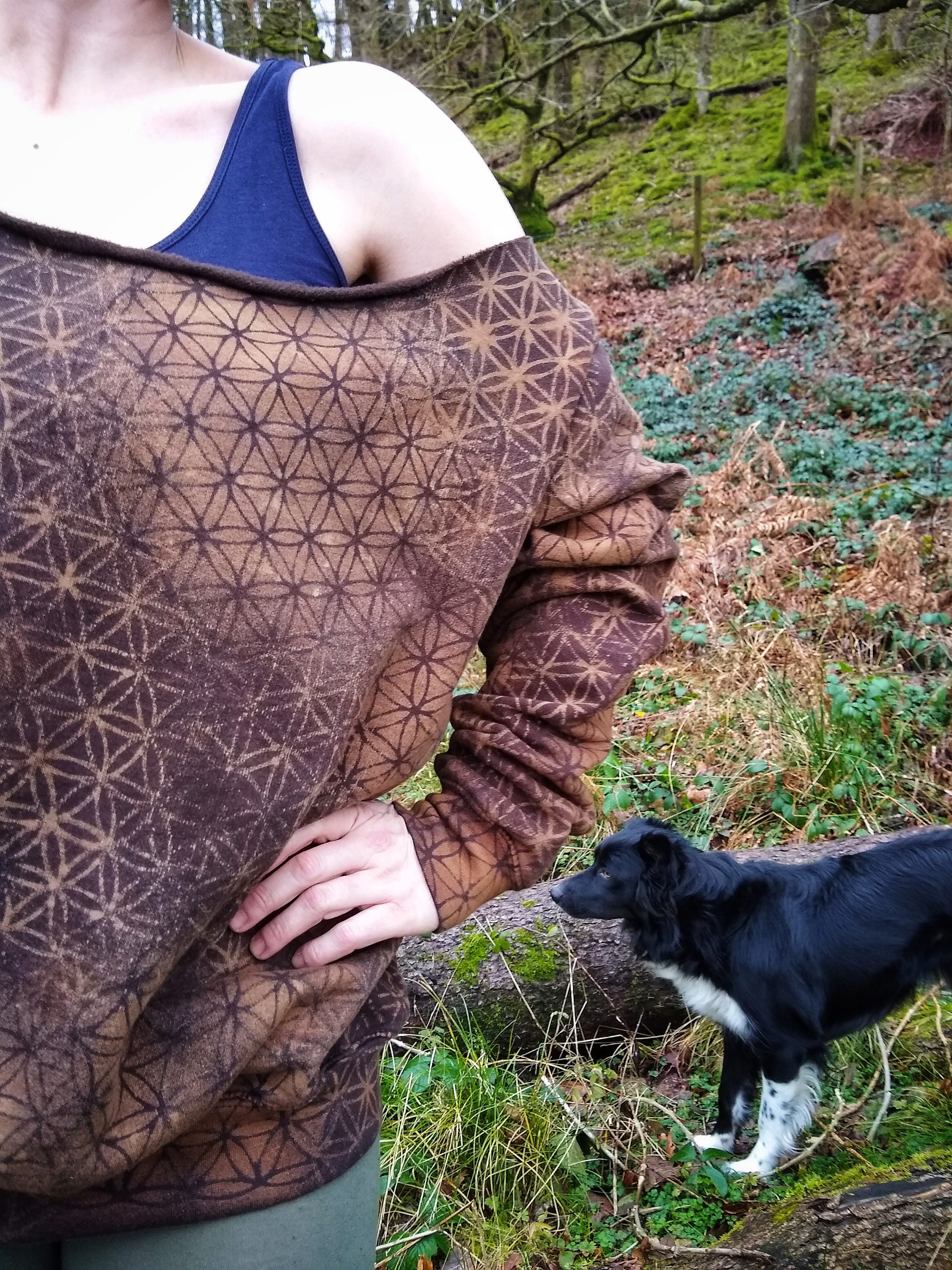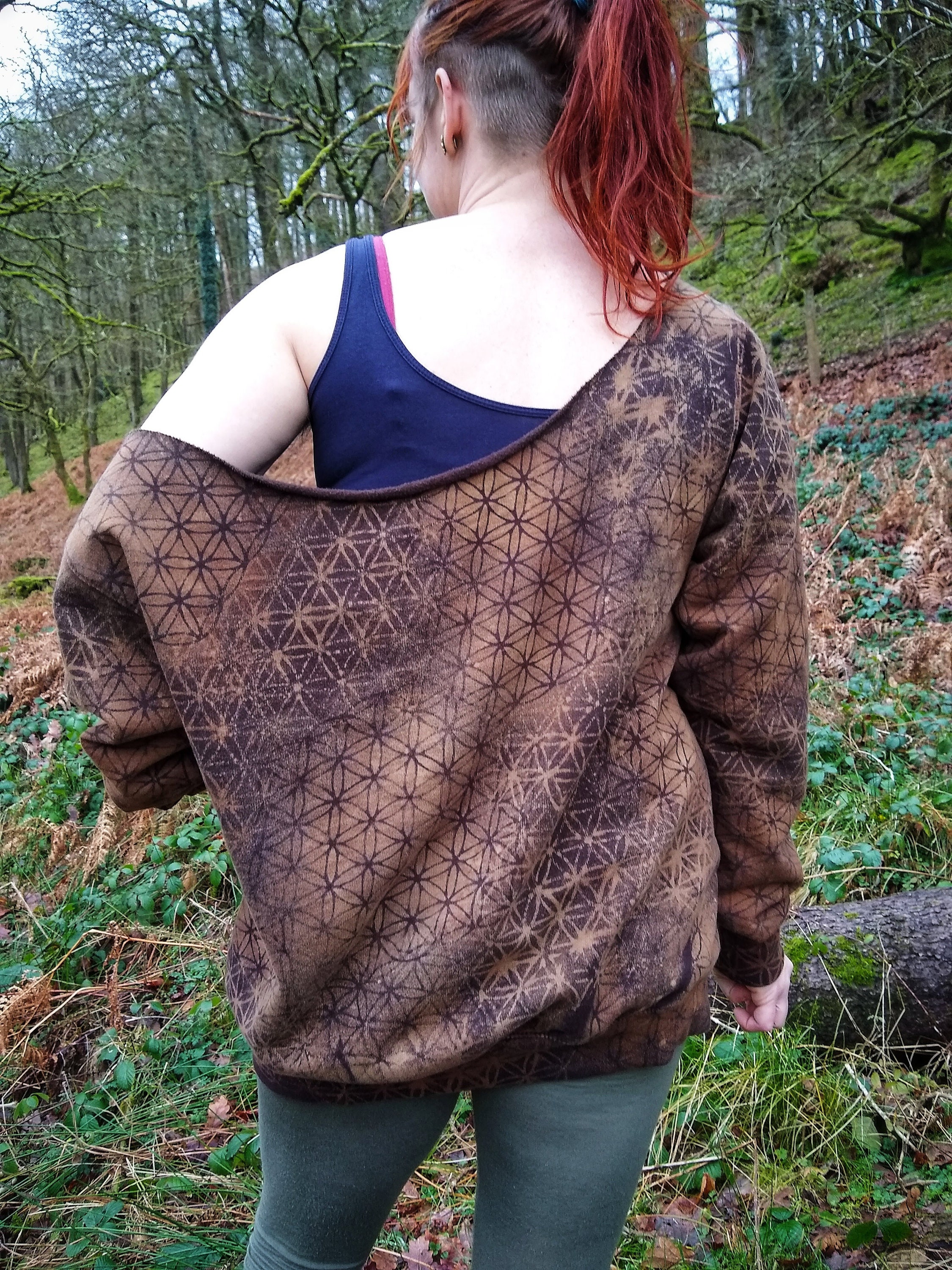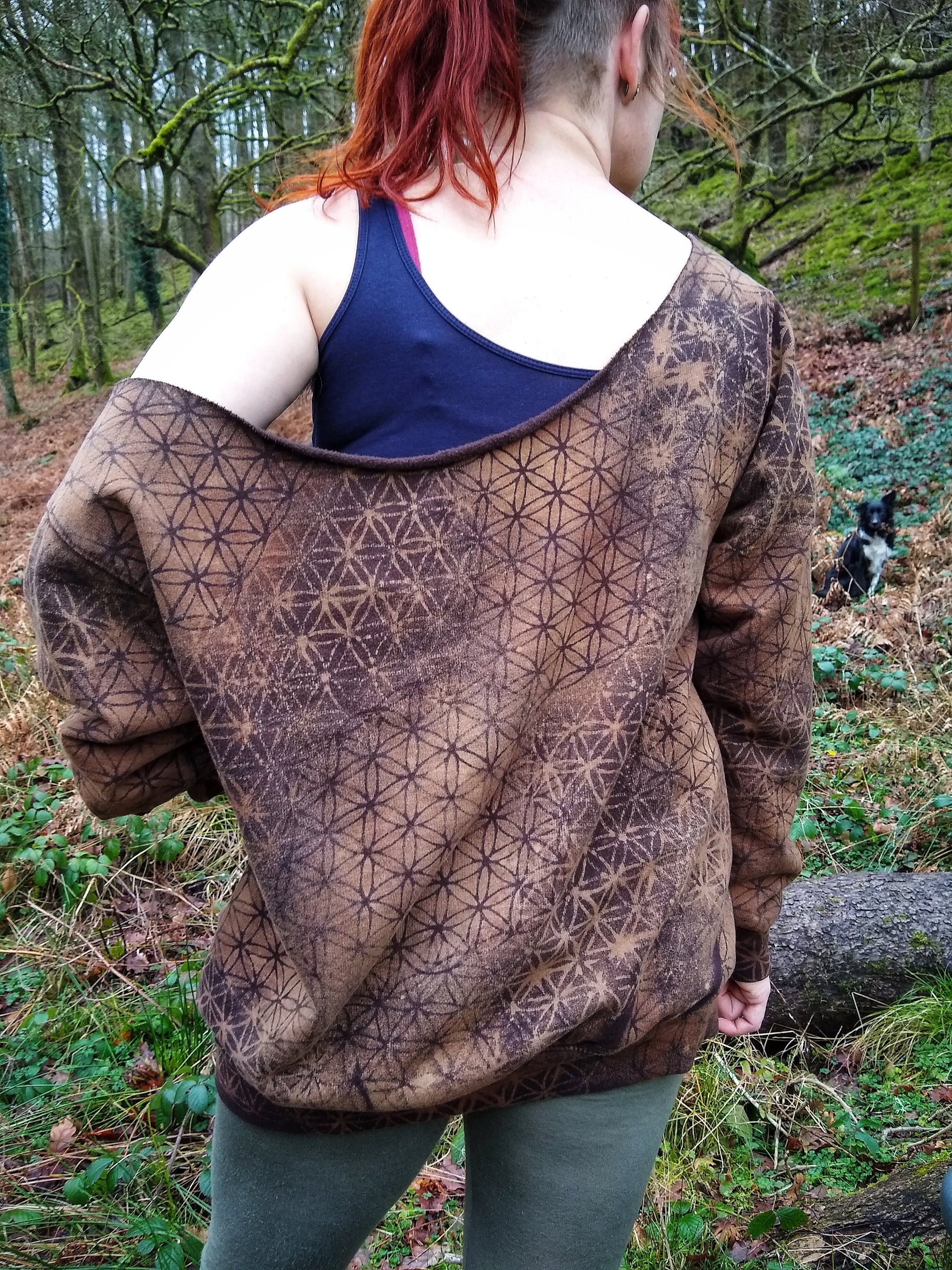 The model is size 10/12 and it's wearing an XL (for a slouchy look), colour: Hot Chocolate.