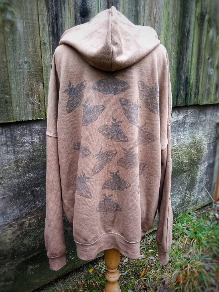 This hoodie is made out of pure magic and the softest fabric! I also bought the matching moth leggings and when worn together I feel the need to run into the forest to dance with the fairies! I have already purchased another hoodie. It does take some time to receive so be prepared to wait around a month for US orders. Thank you Dusty!